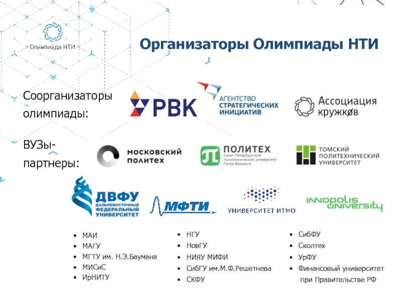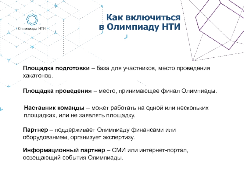 Партнер – поддерживает Олимпиаду финансами или оборудованием, организует экспертизу.
