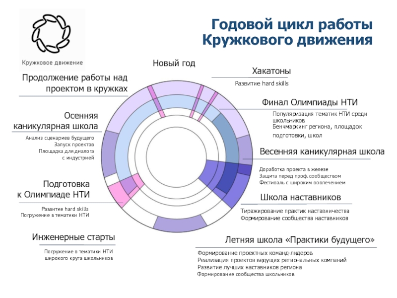 Организовать комплекс мероприятий (проектных школ, ярмарок, фестивалей), обеспечивающих единство ценностей и деятельности кружкового движения.