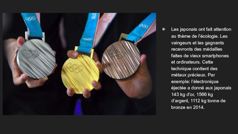Les japonais ont fait attention au thème de l’écologie. Les vaingeurs et les gagnants recevronts des médailles