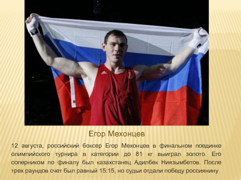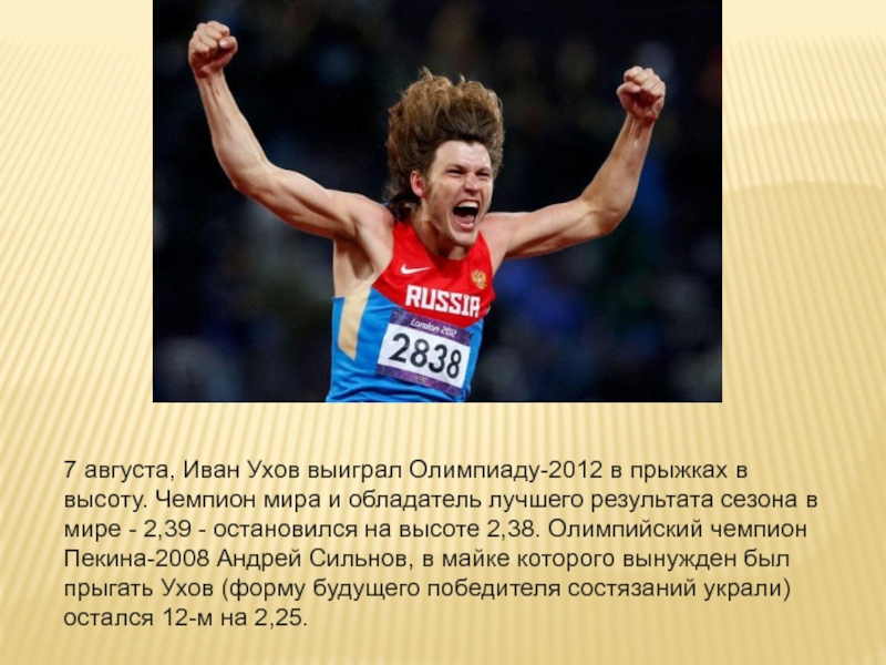 Слайд 107 августа, Иван Ухов выиграл Олимпиаду-2012 в прыжках в высоту.
