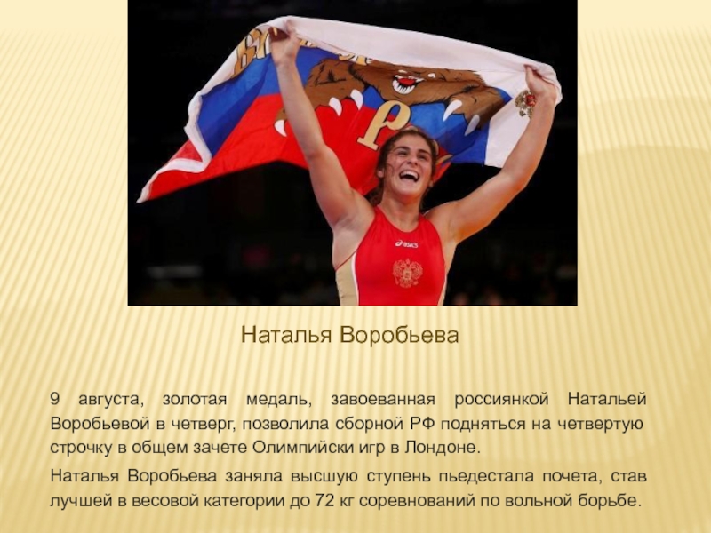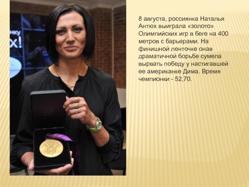 Слайд 118 августа, россиянка Наталья Антюх выиграла «золото» Олимпийских игр в