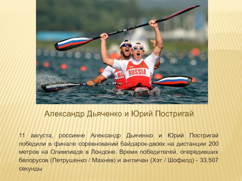С 27 июля по 12 августа 2012 года в Лондоне проводились тридцатые летние Олимпийские игры. На этой Олимпиаде российским спортсменам и