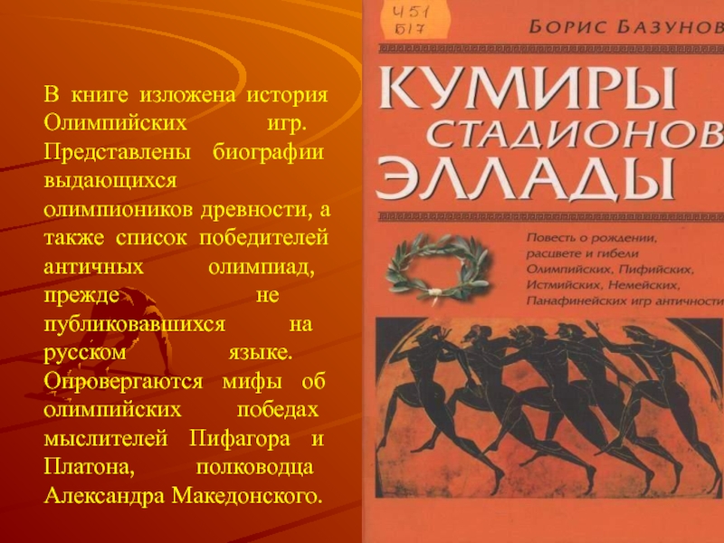 Слайд 5В книге изложена история Олимпийских игр. Представлены биографии выдающихся олимпиоников