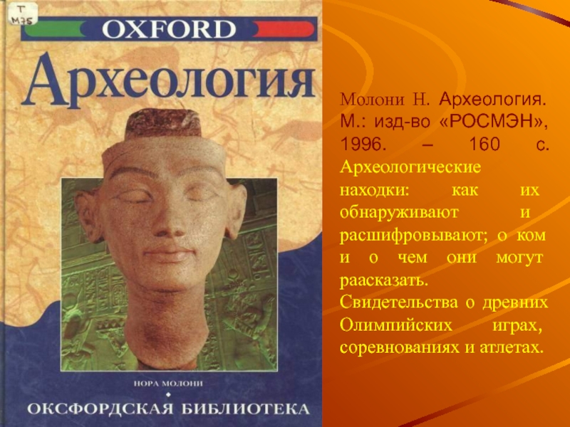 Слайд 6Молони Н. Археология. М.: изд-во «РОСМЭН», 1996. – 160 с.