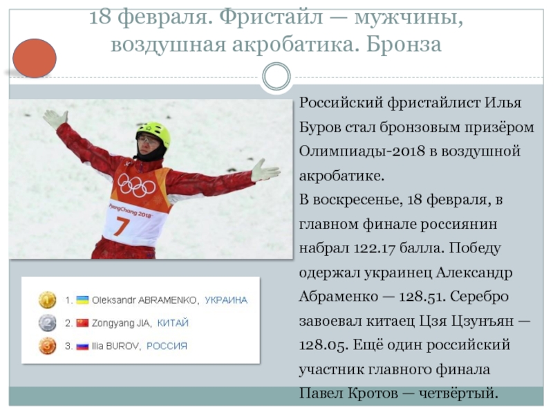 Буров стал бронзовым призёром Олимпиады-2018 в воздушной акробатике.