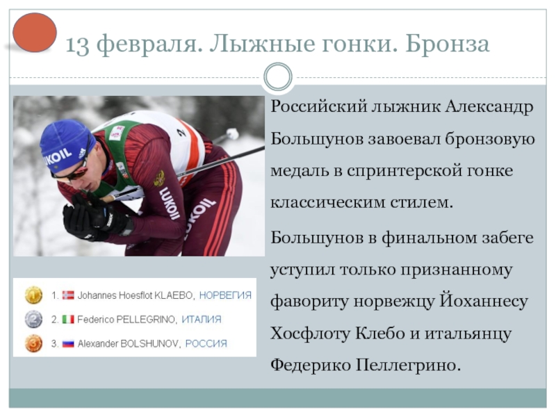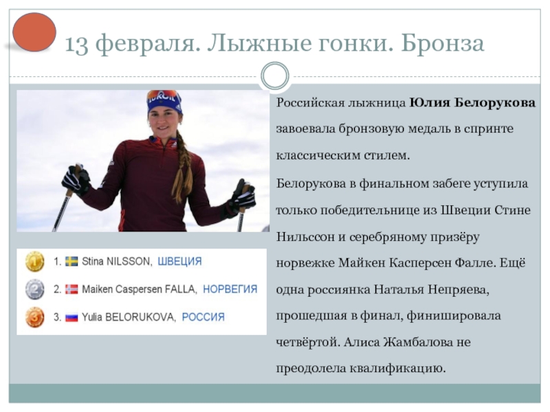 Слайд 813 февраля. Лыжные гонки. Бронза