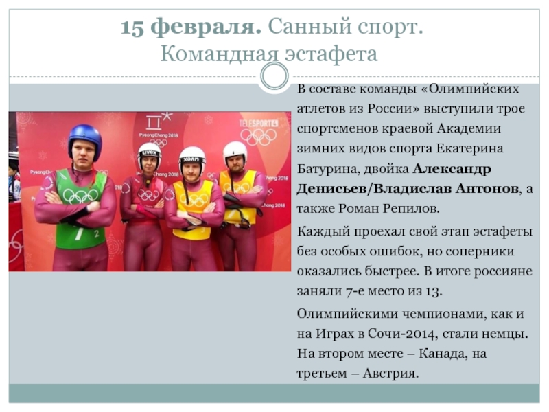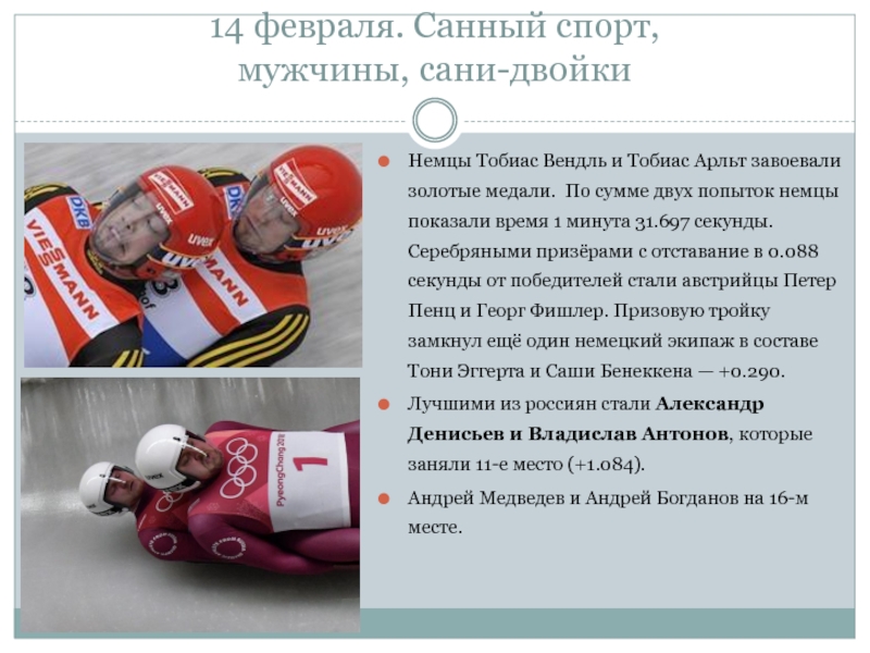 Слайд 914 февраля. Санный спорт,