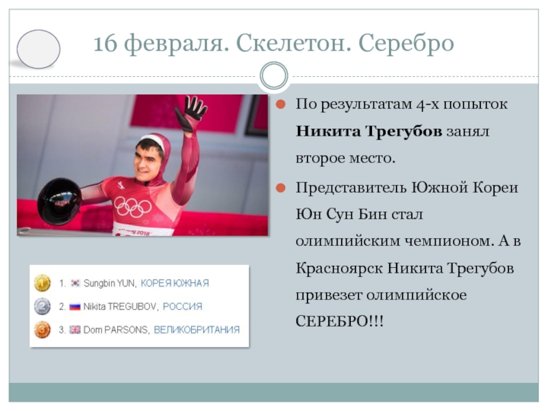 А в Красноярск Никита Трегубов привезет олимпийское СЕРЕБРО!!!