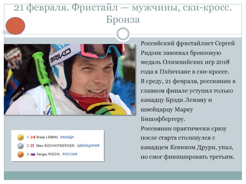 Слайд 1721 февраля. Фристайл — мужчины, ски-кросс.