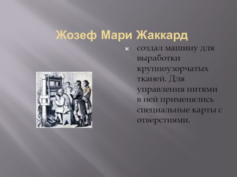 создал машину для выработки крупноузорчатых тканей. Для управления