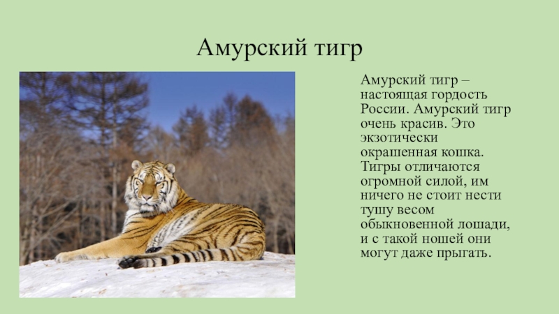 Амурский тигр – настоящая гордость России. Амурский тигр очень