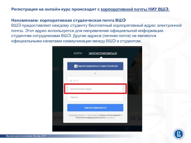 корпоративной почты НИУ ВШЭ. ВШЭ предоставляет каждому студенту бесплатный корпоративный адрес электронной почты. Этот адрес используется для