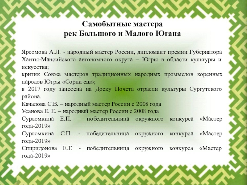 Слайд 2Юганские мастера народных промыслов и ремесел - истинные носители и