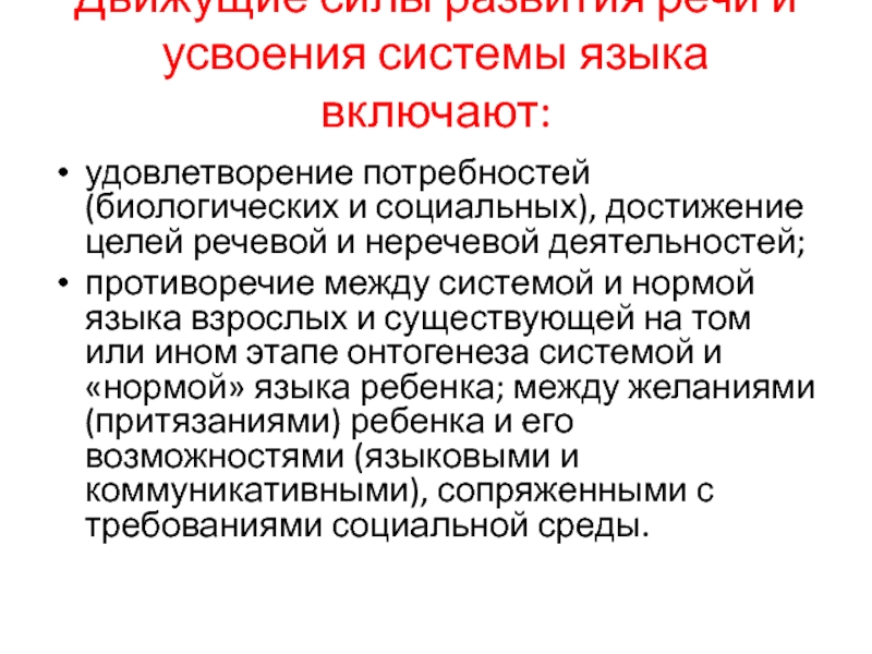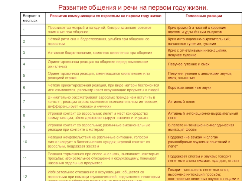 Слайд 10 Становление и развитие речи происходит в течение трех