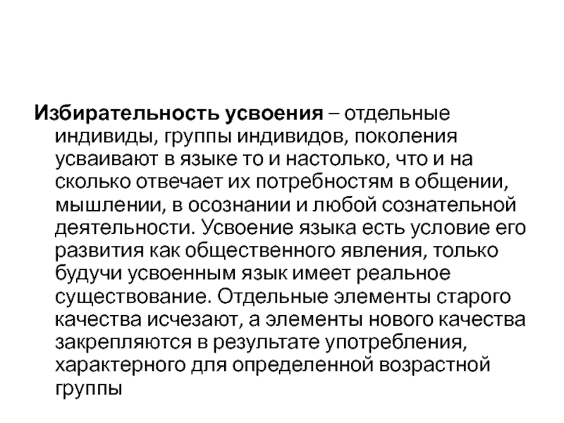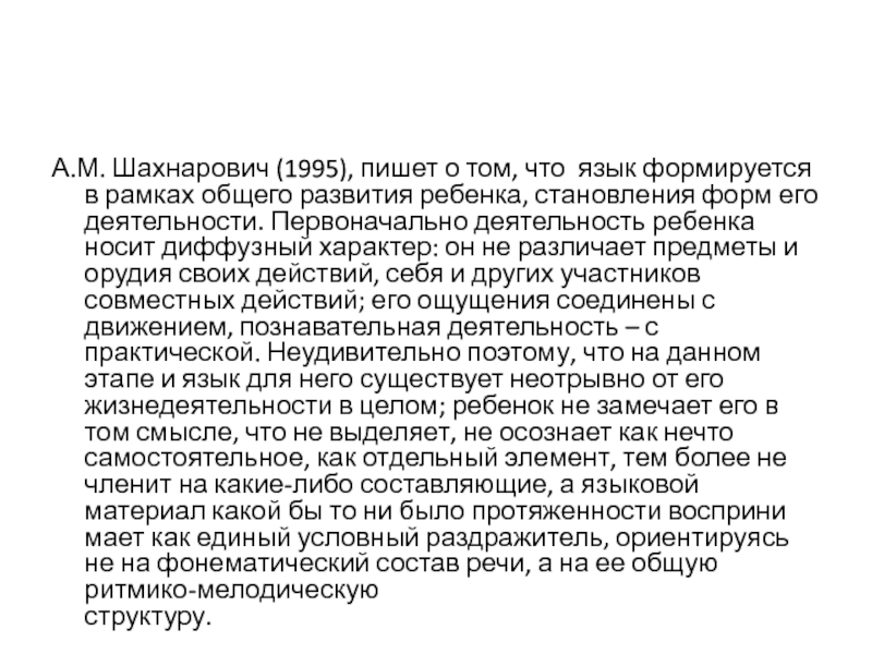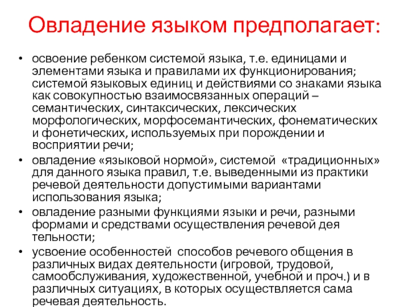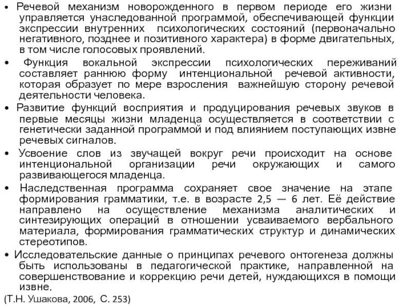 определяет способность ре6ёнка уже в очень раннем возрасте понимать и конструировать из нескольких десятков звуков родного языка неограниченное количество речевых сигналов, которые в большинстве случаев ребенок ранее не произносил и не слышал и которые будут иметь для него и для окружающих определённое значение