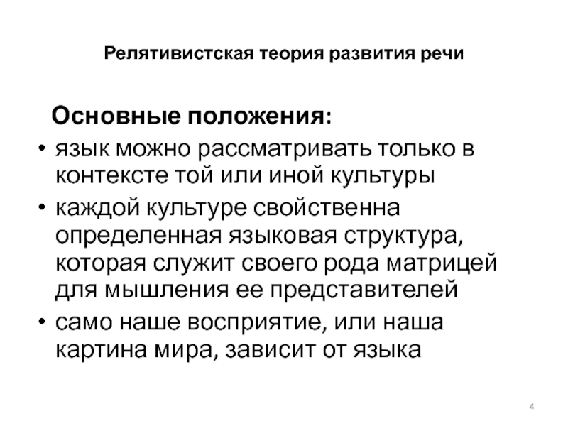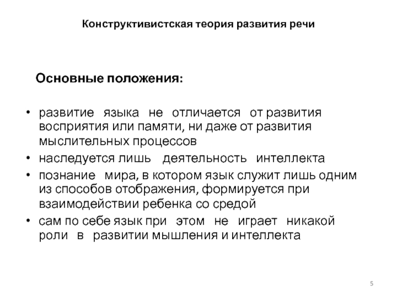 сам по себе язык при этом не играет никакой роли в развитии мышления и интеллекта