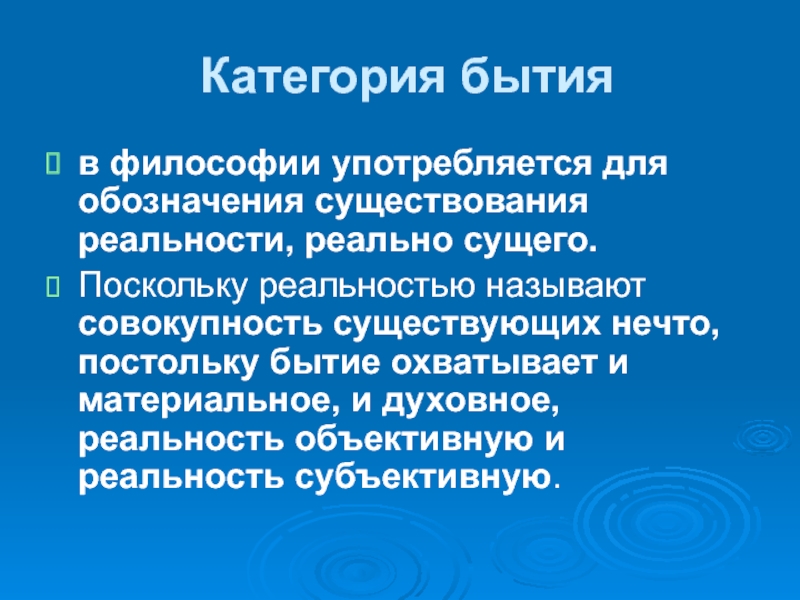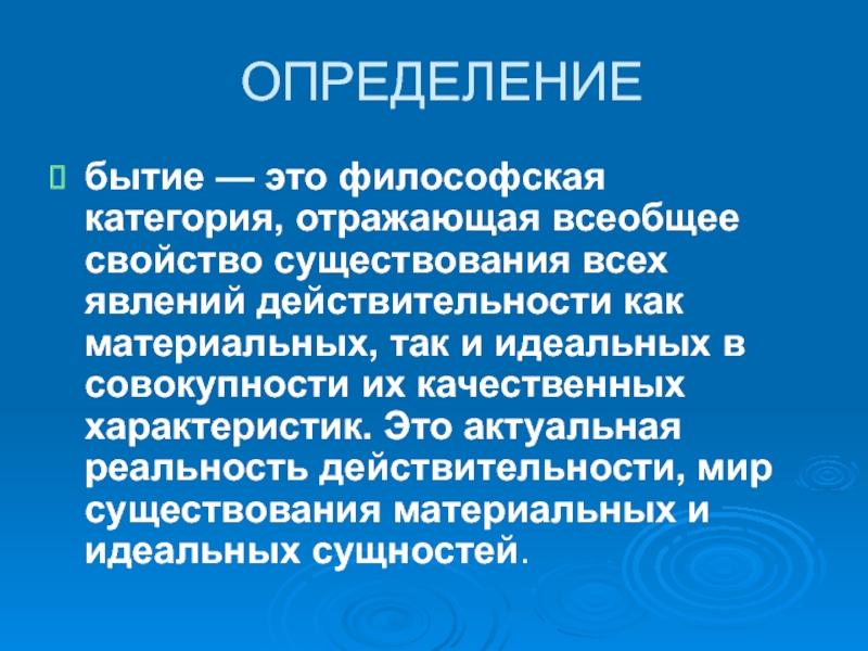 бытие — это философская категория, отражающая всеобщее свойство существования всех