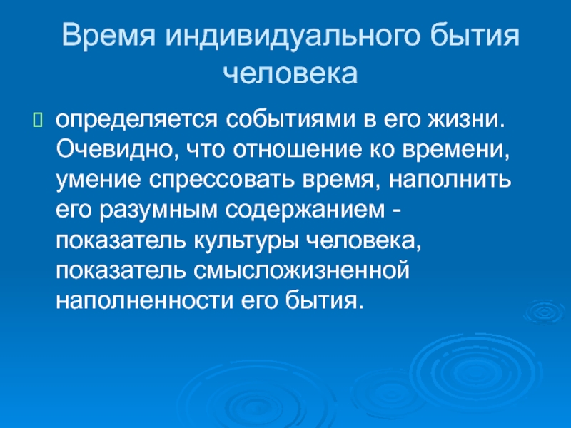 отношение ко времени, умение спрессовать время, наполнить его разумным содержанием