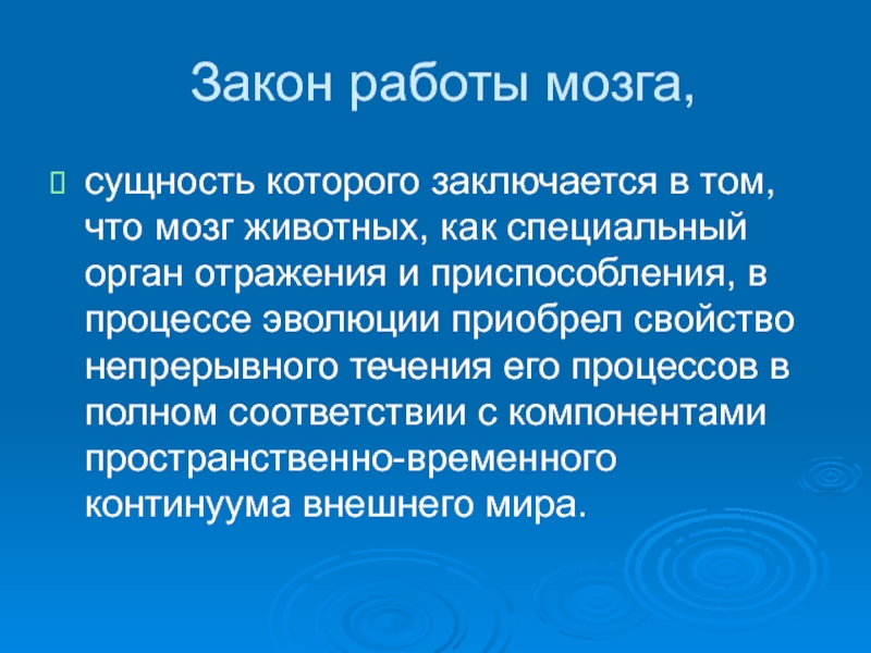 свойство непрерывного течения его процессов в полном соответствии с компонентами пространственно-временного континуума внешнего мира.
