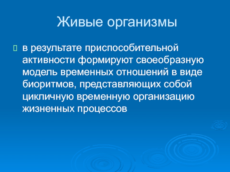 в виде биоритмов, представляющих собой цикличную временную организацию жизненных процессов