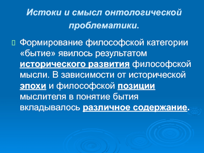 и философской позиции мыслителя в понятие бытия вкладывалось различное содержание.