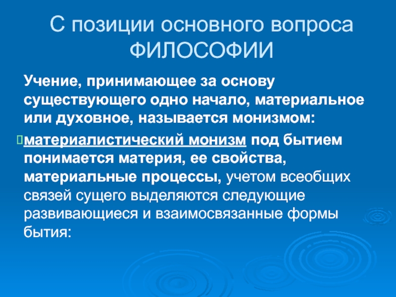 Слайд 15С позиции основного вопроса ФИЛОСОФИИ