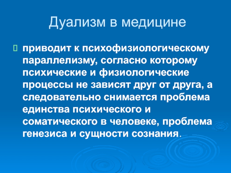 проблема единства психического и соматического в человеке, проблема генезиса и сущности сознания.