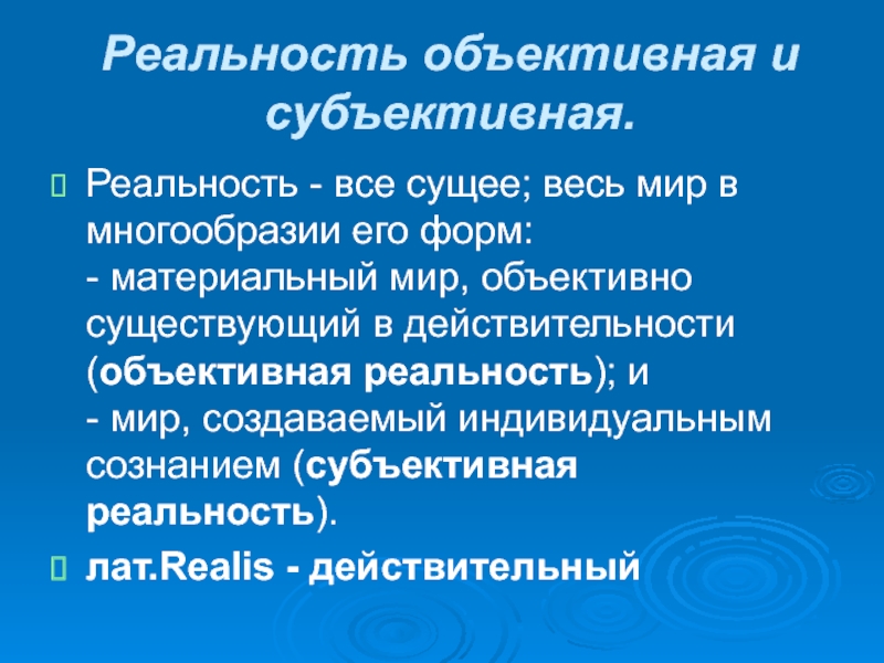 в философии употребляется для обозначения существования реальности, реально сущего.