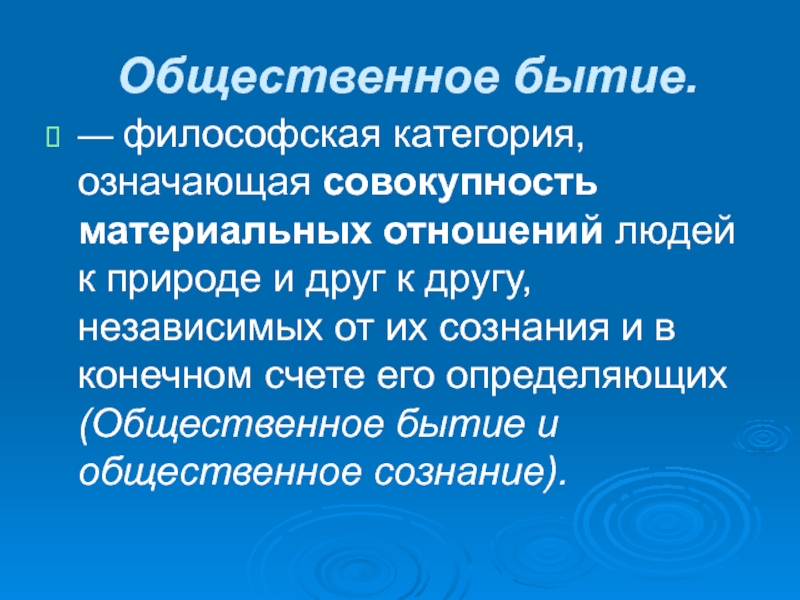 и в конечном счете его определяющих (Общественное бытие и общественное сознание).