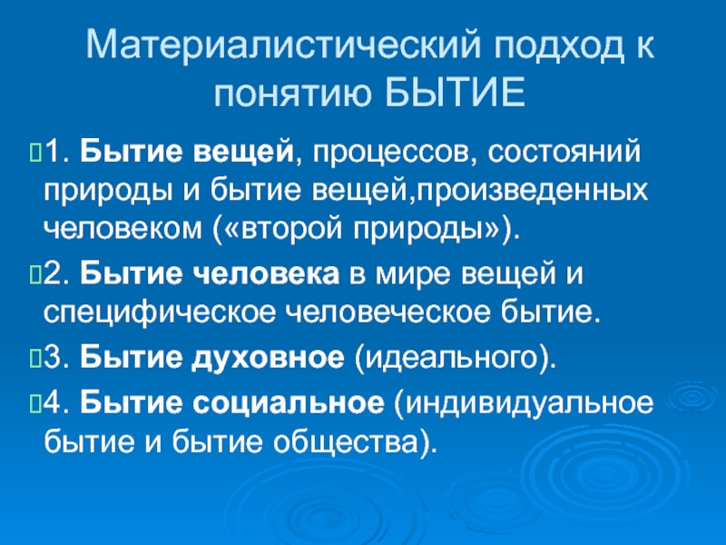 Слайд 16Материалистический подход к понятию БЫТИЕ