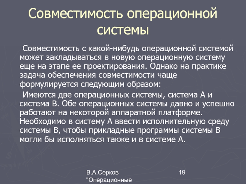 ее проектирования. Однако на практике задача обеспечения совместимости чаще формулируется следующим образом: