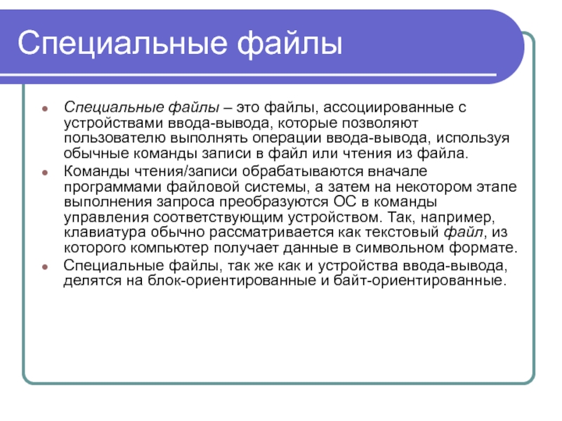 Слайд 8Специальные файлы