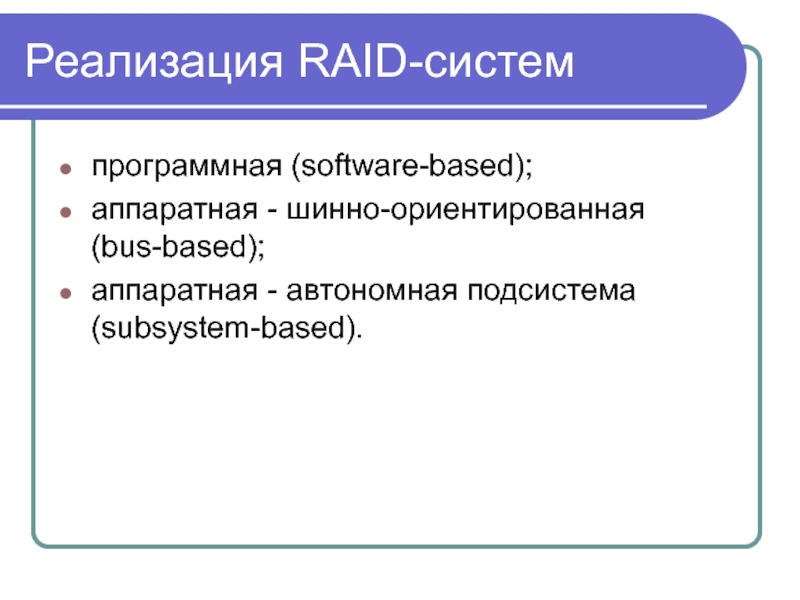 Слайд 55Реализация RAID-систем