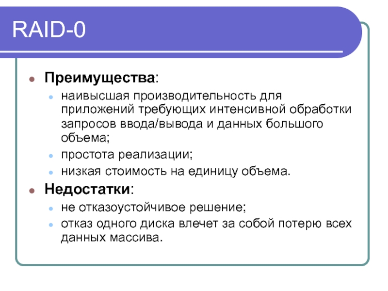 отказ одного диска влечет за собой потерю всех данных массива.