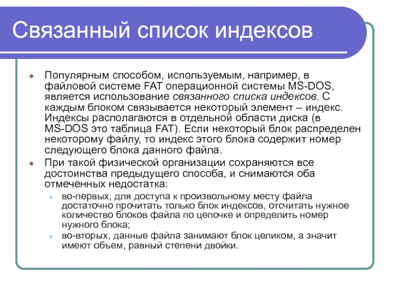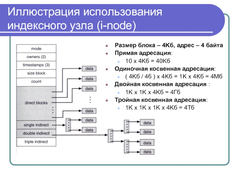 файловой системе FAT16, или, как это реализовано в ОС UNIX, ссылаться на специальные индексные узлы (i-node), которые содержат атрибуты и информацию о размещении файлов.