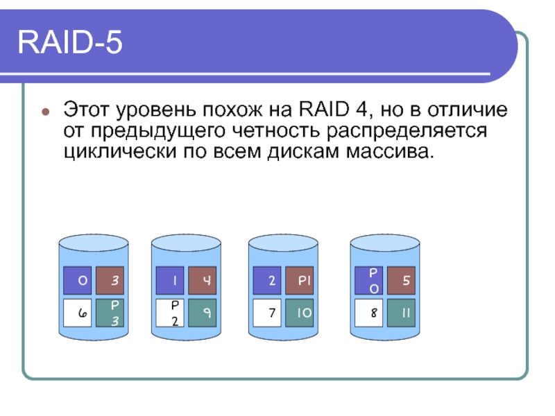 предыдущего четность распределяется циклически по всем дискам массива.