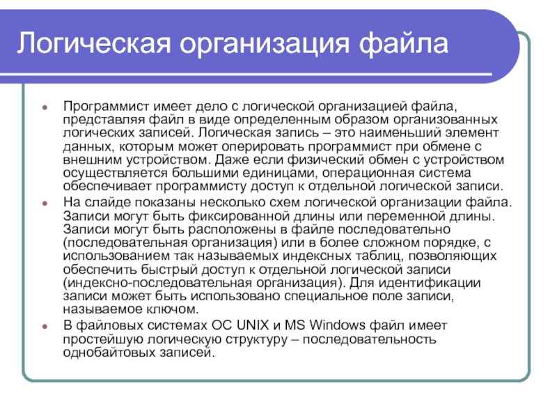 Слайд 14Логическая организация файла