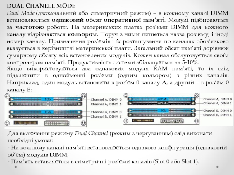 Для включення режиму Dual Channel (режим з чергуванням) слід виконати необхідні умови: