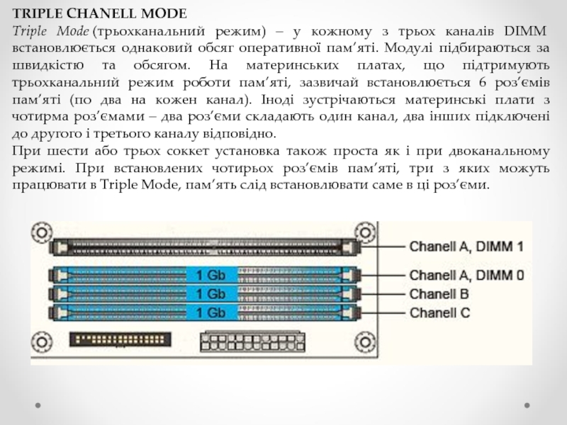 - На кожному каналі пам’яті встановлюється однакова конфігурація (однаковий об’єм) модулів DIMM;