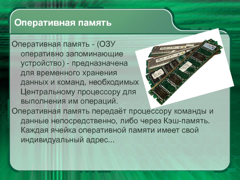 памяти. Его название соответствует принципу работы, так как модуль позволяет