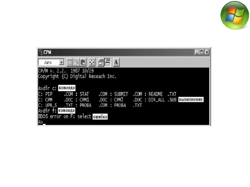 Слайд 9Операционная система MS DOS