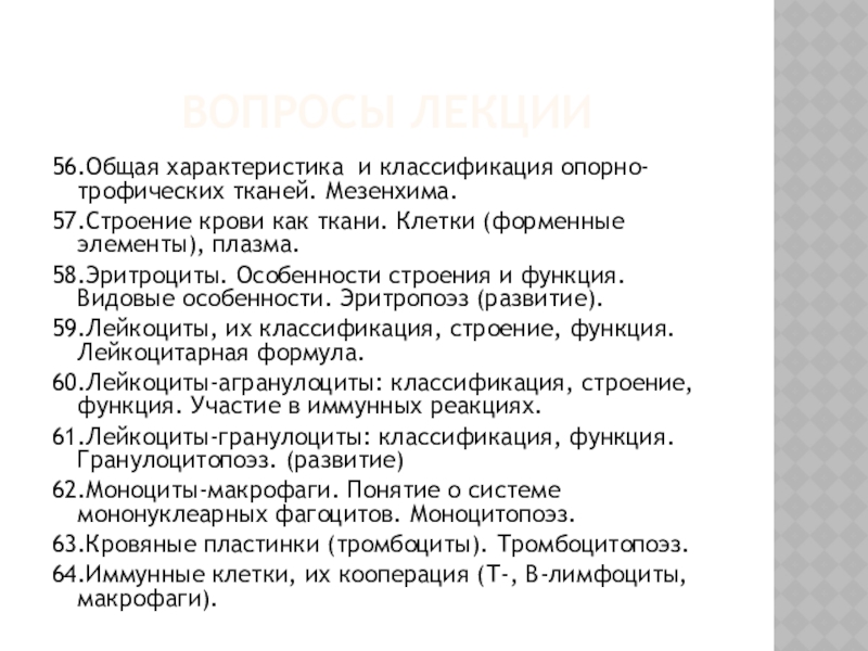особенности. Эритропоэз (развитие).59.Лейкоциты, их классификация, строение, функция. Лейкоцитарная формула.