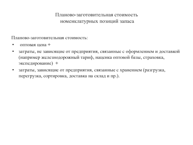 планово-заготовительной стоимости номенклатурных позиций запаса