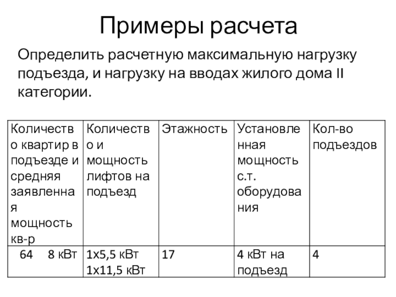 Определить расчетную максимальную нагрузку подъезда, и нагрузку на вводах
