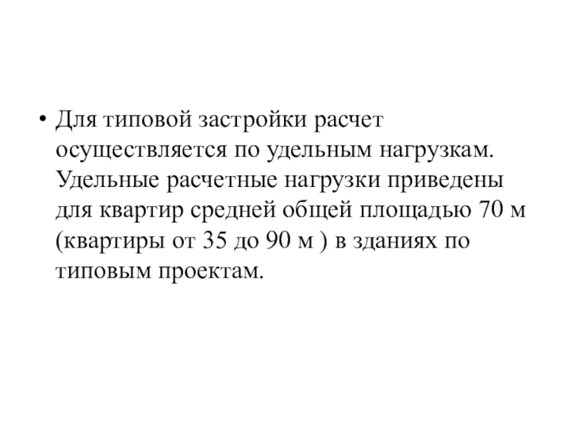 Слайд 6Для типовой застройки расчет осуществляется по удельным нагрузкам. Удельные расчетные