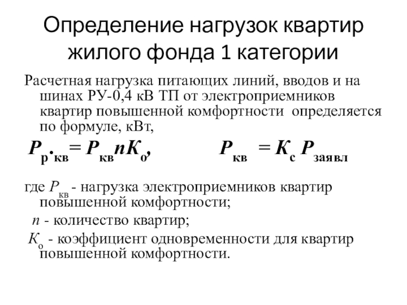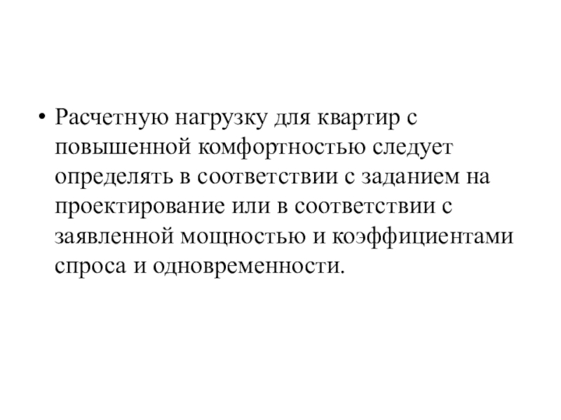 Слайд 8Расчетную нагрузку для квартир с повышенной комфортностью следует определять в
