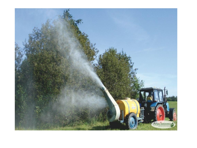 • опыливатели – применяются для борьбы с вредителями и болезнями при помощи сухого ядовитого порошка или пыли. Они бывают ранцевые, тракторные (прицепные и навесные) и авиационные;