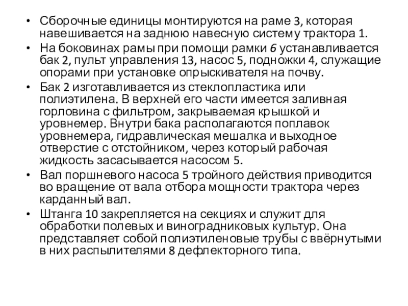 Слайд 25Сборочные единицы монтируются на раме 3, которая навешивается на заднюю