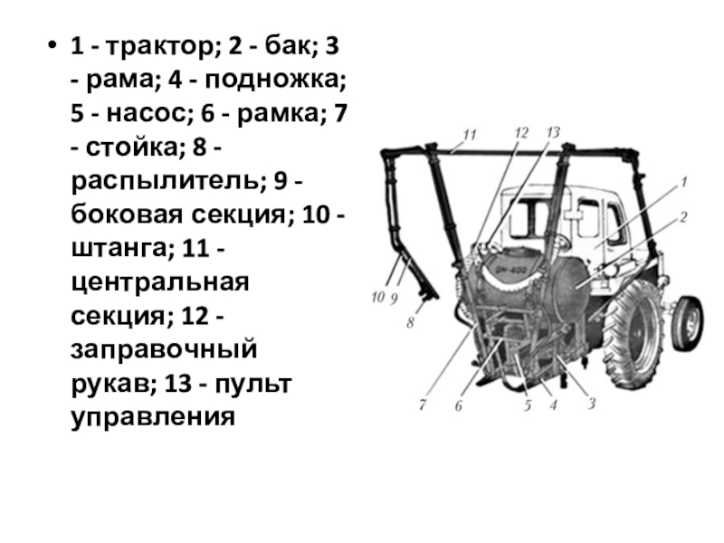 Слайд 231 - трактор; 2 - бак; 3 - рама; 4