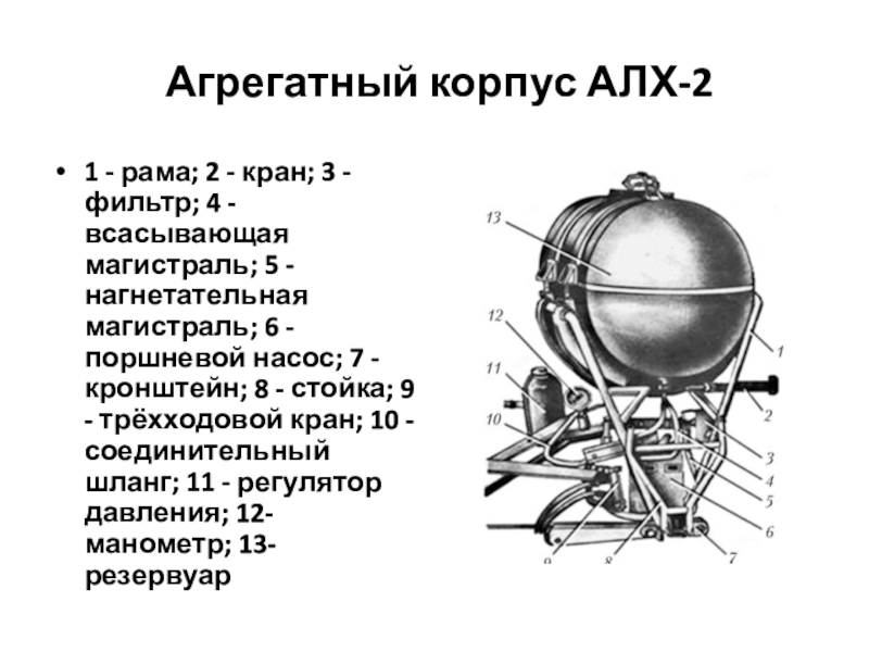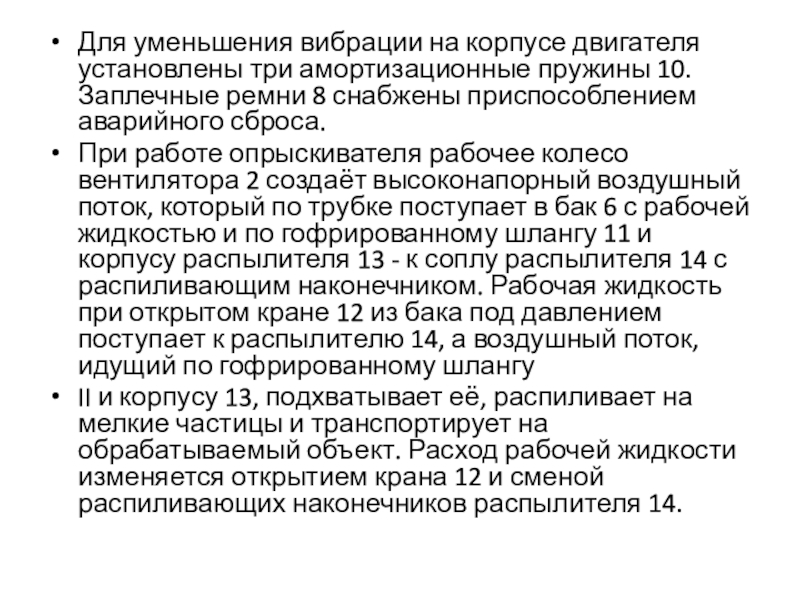 Слайд 26При работе опрыскивателя рабочая жидкость из бака 2 через отстойник